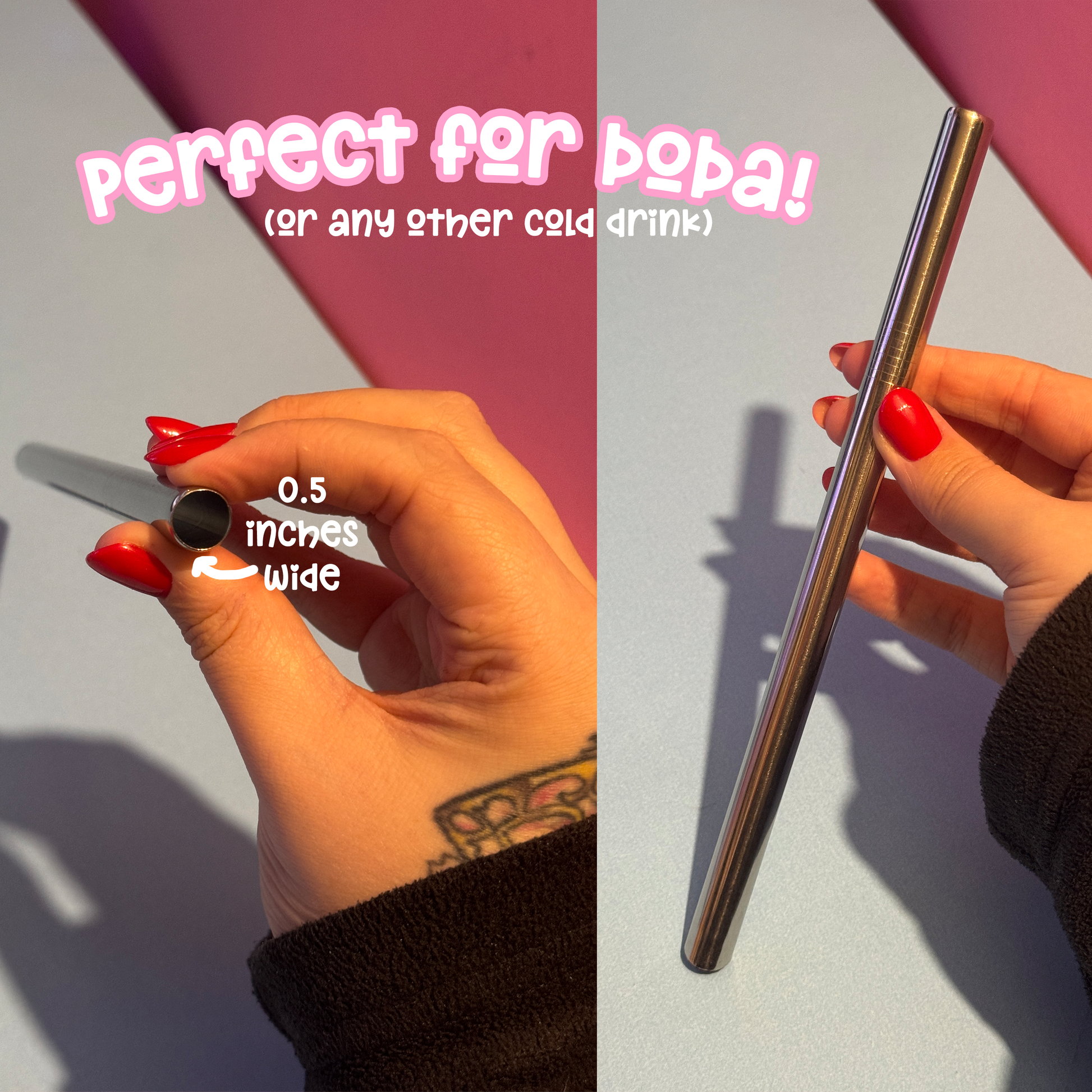 Your order includes a silver, thick metal straw (which is perfect for boba!)